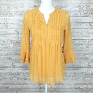 Charter Club Blouse PP Yellow Top Sheer Sleeve 562