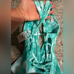‼️RARE‼️🎸BECCA🎸🔥NWT🔥Crystal Ribbed Tie Dye One-Piece Swimsuit in Green— Size M