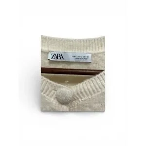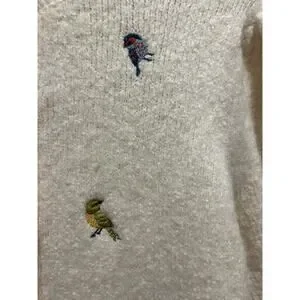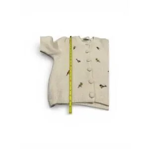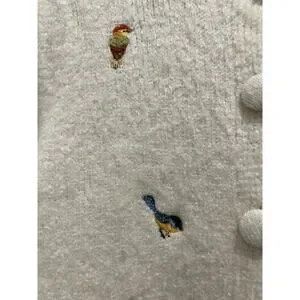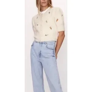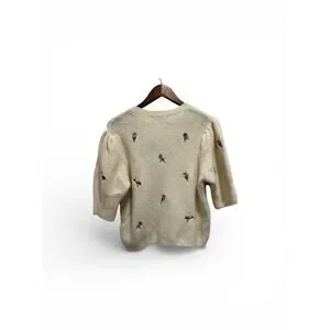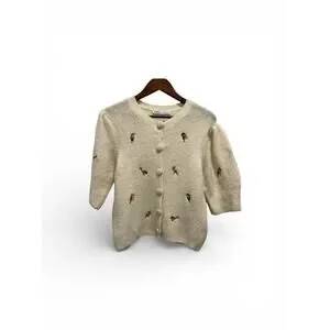 ZARA Novelty Bird Embroidered Short Sleeve Cardigan Cream Size L Preppy