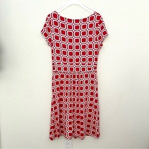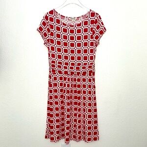 BODEN Amelie Stretch Jersey Dress Short Sleeve Scoop Neck Geometric Red White Size US 6