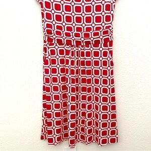 BODEN Amelie Stretch Jersey Dress Short Sleeve Geometric Red White Size US 6
