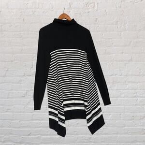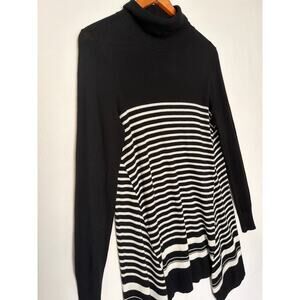 Apt 9 Medium Black White Asymmetrical Striped Turtleneck Tunic Knit Sweater