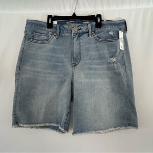 NWT Seven7 Denim Shorts Women's Size 16, 9 inch inseam Front and Back Pockets Sunset Bermuda Frayed Leg Hem Summer Casual Comfy Stylish