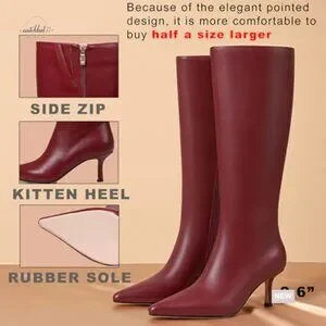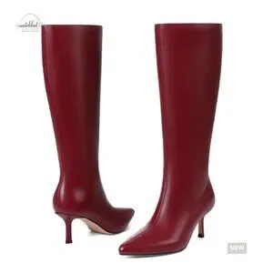 Knee High Boots Pointed Toe Stiletto Heel Side Zipper Dress Boots