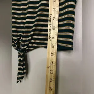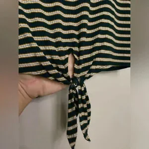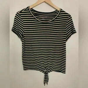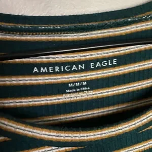 American Eagle women’s MED short sleeve cropped tee tie front green & mustard