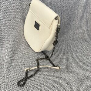 Elegant white crossbody bag featuring a stylish chain strap. Perfect for any occasion.