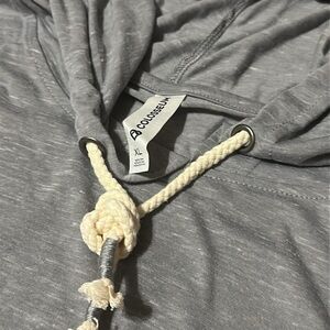 Stylish heather gray training hoodie with long sleeves. Soft and versatile. Measures 23 inches pit to pit and 26 inches from back of collar to hem. Brand new with tags.