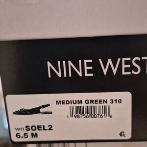 NEW Nine West Women's Soel Slingback Pointed Toe Flats woven design Green Sz 6.5