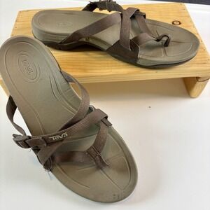 Teva Voya Infinity Brown Sandals Women's 8 Adjustable Strappy Slides READ