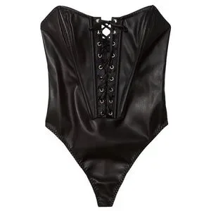 The smoldering wear-everywhere piece you need, featuring sleek faux leather, contoured boning, and lace-up details. It's asking to be paired with your favorite jeans.