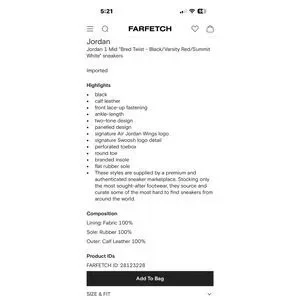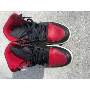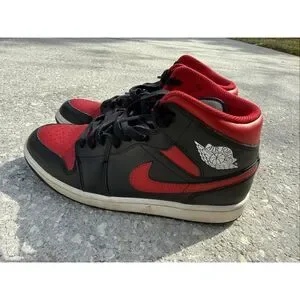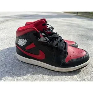 Nike Air Jordan 1 Mid Sneakers Red Bred Black Basketball Streetwear Men Size 9.5
