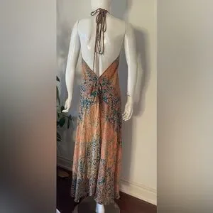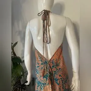 Step out in style with this elegant multicolor paisley maxi dress. Perfect for any occasion, this dress features a stunning blend of blue, orange, and cream hues. The flowing design offers both comfort and sophistication.