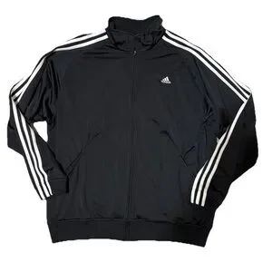 Adidas Men’s Black Tricot Track Jacket Size L 3-Stripes Zip Athletic Streetwear