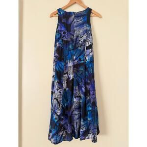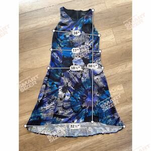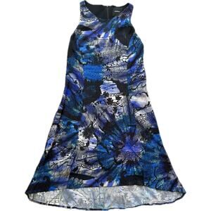 Desigual Women's Dress Sleeveless Swing Abstract Artsy L Purple Blue Deco Punk