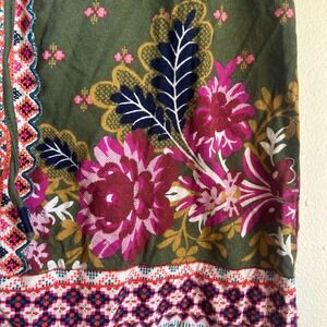 Anthropologie Embroidered Floral Boho Top Women XS Olive Green Tie Nek