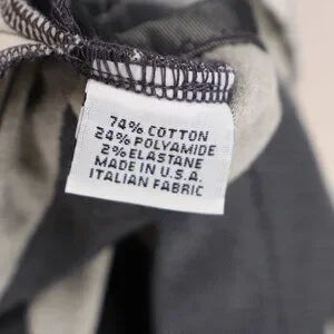 - 74% Cotton, 24% Polyamide, 2% Elastane