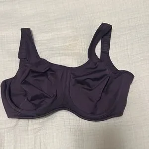 Elegant and supportive design. Plum colored. Has a unique underwire on the outside, to maximize support. 36DDD