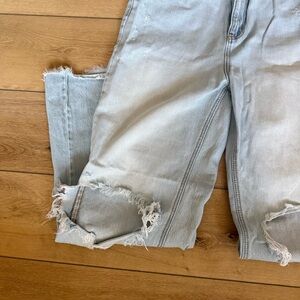 Stylish light blue distressed jeans perfect for a casual look. Comfortable and trendy, these jeans are a must-have for your wardrobe. They are size 11 but fit smaller