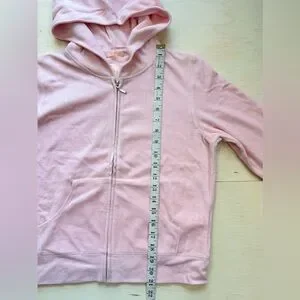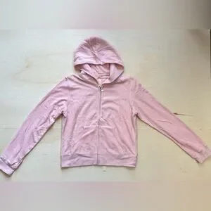 VTG F21 Light Baby Pink Velour Zip up Track Jacket Hoodie L