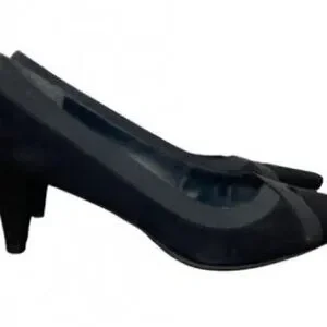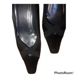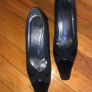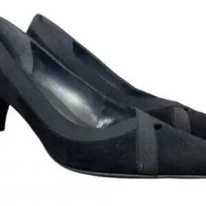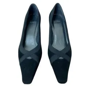 Stuart Weitzman Black Suede Toe Grosgrain Trim Pumps Heels