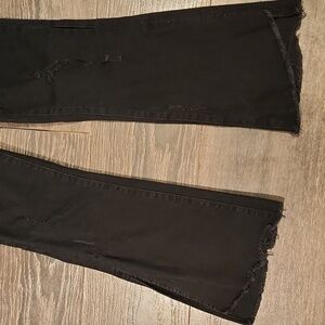 ❤️ FLYING MONKEY SPLIT HEM DISTRESSED CROP FLARE JEANS, 4 (27) Zipper fly with button closure. Stretchy. Measurements are approximate and taken laying flat: 25" inseam, 14" waist, 8.5" rise, 8.5" leg opening, 8" slit in outseam hems. Excellent condition!