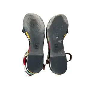Very fun sandal - in good used condition. See photos. Leather and rope materials.