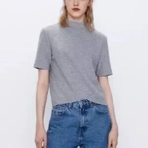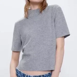 Zara Trafaluc Gray Mock Neck Short Sleeve Knit Sweater Top