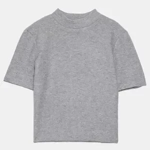 A minimalist short-sleeve sweater with a mock neck, perfect for transitional seasons or a polished casual look. Zara Trafaluc Autumn-Winter 17-18 collection.