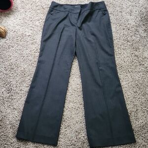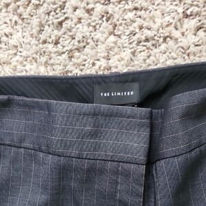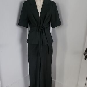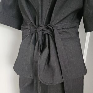 This elegant gray pinstrip pant suit is perfect for any occasion. Its sleek design offers a sophisticated look, making it a versatile addition to your wardrobe. pant: inseam 32in. waist 17in. Cassidy fit