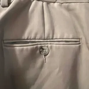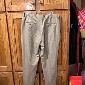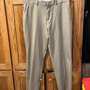 These Perry Ellis tan chinos offer a classic straight-leg fit, perfect for versatile styling. Crafted from a smooth cotton-blend material, they provide a clean and polished look suitable for various occasions. The warm neutral tone ensures these chinos are a staple addition to any wardrobe.