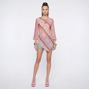 Vintage Pink Floral Asymmetric Sheer Tunic Top Fairy Grunge Fashion Bug Size S