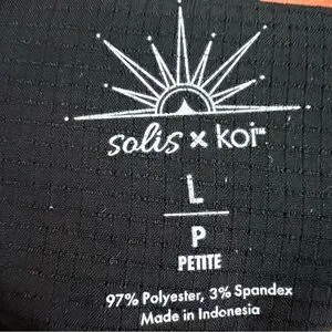 Comfortable black scrub pants with stylish pink drawstrings. Can be worn as joggers or wide leg! Size large petite
