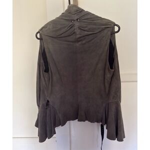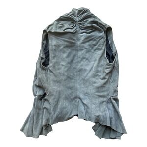 Grai Women Grey Suede Leather Draped Ruffle Peplum Vest Made in USA Size M