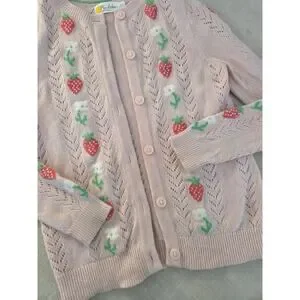 Boden Pink Strawberry Cardigan Sweater