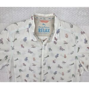 Tommy Bahama Shirt Mens Large White Button Down Beach Relax Island Modern Linen
