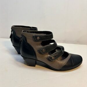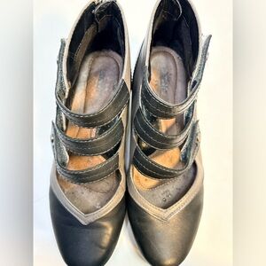Earth Shoes Serano Mary Jane Heels Black and Gray Women's strappy Ankle Boots