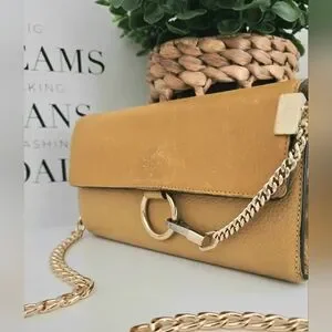 Authentic CHLOE Faye Leather Flap Wallet Card Holder Clutch WOC Crossbody