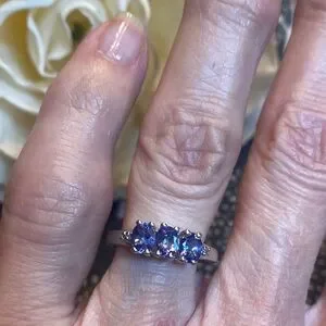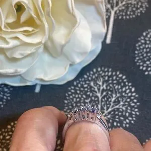 This stunning ring showcases three vibrant purple gemstones set in a sleek silver band, perfect for any occasion. The stones are just stunning!😍. Lab Tanzanite?
