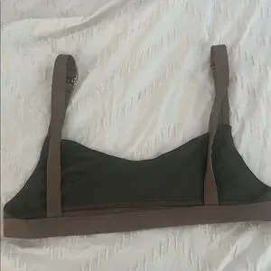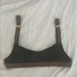 Discover comfort and style with this elegant hunter green and brown bralette. Perfect for everyday summer wear, it offers a sleek design with gold clasp straps