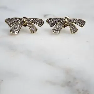 Add a touch of elegance with these stunning gold plated bow earrings and zircon Perfect for any occasion.