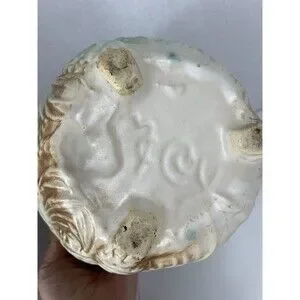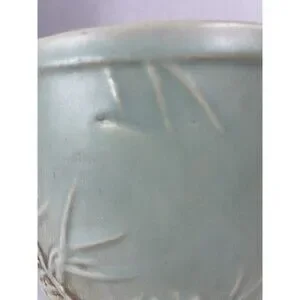This vintage McCoy planter pot features a lovely pine tree cone pattern on a round, medium-sized porcelain body. The colors of green and brown give it a natural, earthy feel. It was manufactured in the mid 20th century, specifically in the late 1940s, making it a unique piece of history that would make a great addition to any collection.