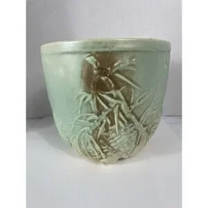 McCoy Planter Pot Pine Cone Jardiniere Blue Green Brown Vtg MCM Cottagecore