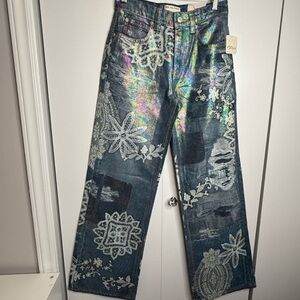 Free People We The Free Tinsley Printed High Rise Illusion Jeans Straight NWT