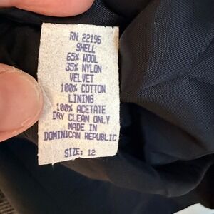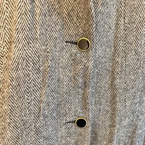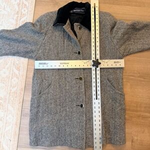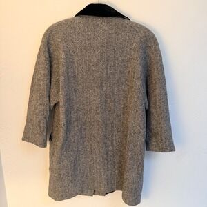 Vtg Herringbone Wool Blend Coat Black Velvet Collar Grey Womens 12 Quiet Luxury