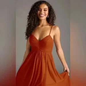 Azazie Paprika Aline Pleated Chiffon Dress in Size A16