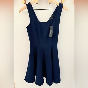 NWT Lulus Navy Blue Mini Dress. Size S. Scoop neckline. V back with zippered closure. Perfect condition. Never worn.