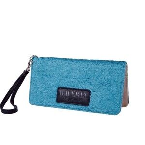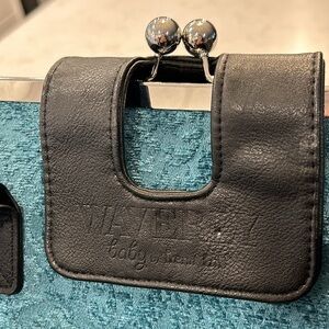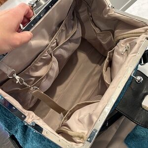 Multiple Leash clasps inside the bag with card holder coin purse clutch attached.