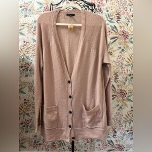 Chic and comfortable pink cardigan. Features button-down front and pockets. Ideal for layering. Brand new with the tags