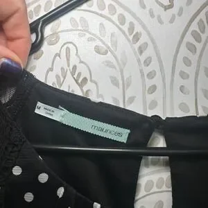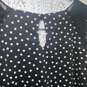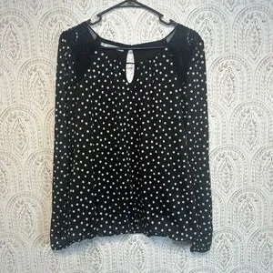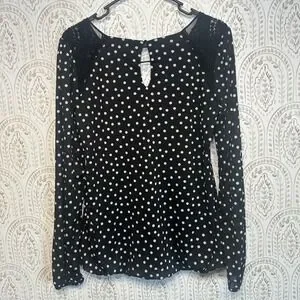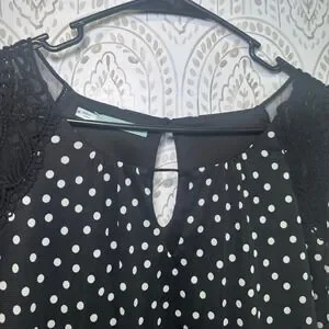 Maurices Womens Black White Polka Dot Lace Shoulder Keyhole Blouse Shirt Medium