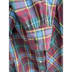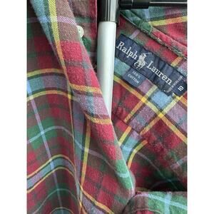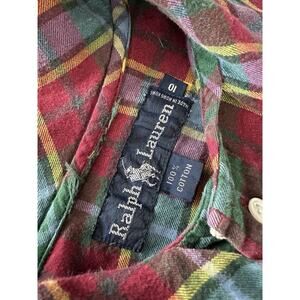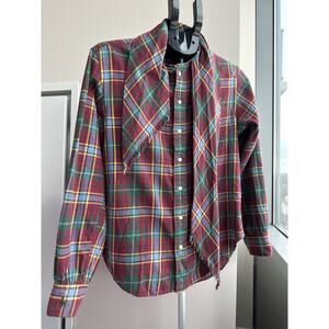 Vintage Ralph Lauren 80s Plaid Flannel Tie Neck Blouse Size 10
